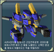 AURA장치를 탑재시킨 근접전투로봇. 리미터를 해제시키면 매우 긴 팔을 노출된다. 난폭한 본성을 깨워서 쳐들어오는 적을 무찔러라!