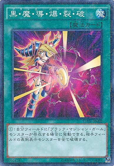 ①: 자신 필드에 "블랙 매지션 걸" 몬스터가 존재할 경우에 발동할 수 있다. 상대 필드의 앞면 표시 몬스터를 전부 파괴한다.