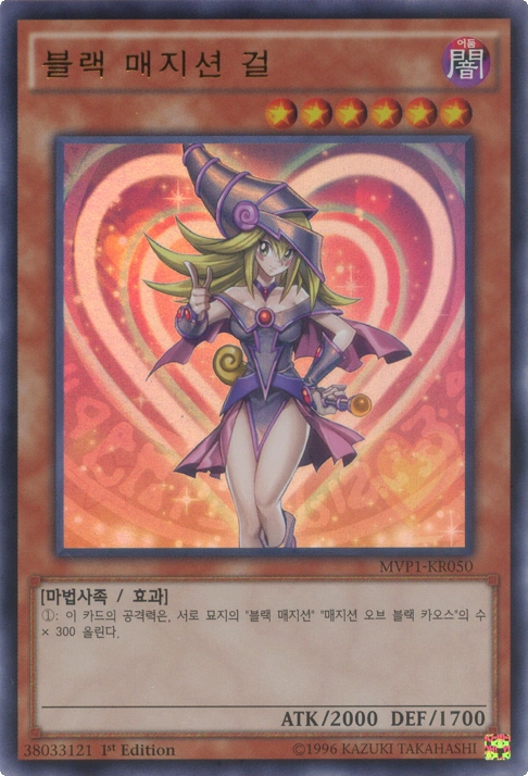 드디어 나온 블매걸 전용 서포트 카드이자 블랙 매지션 걸을 카드군으로 묶은 카드. 그래서 자신 필드에 툰 블랙 매지션 걸이나 용기사 블랙 매지션 걸이 있어도 발동이 가능하다. 스승의 흑・마・도(블랙 매직)가 마/함을 견제한다면 이쪽은 몬스터다. 효과는 코스트가 없는 라이트닝 보텍스.(뒷면 표시 몬스터는 건드리지 못한다.) 당연히 스타라이트 로드스타더스트 드래곤을 조심하자.