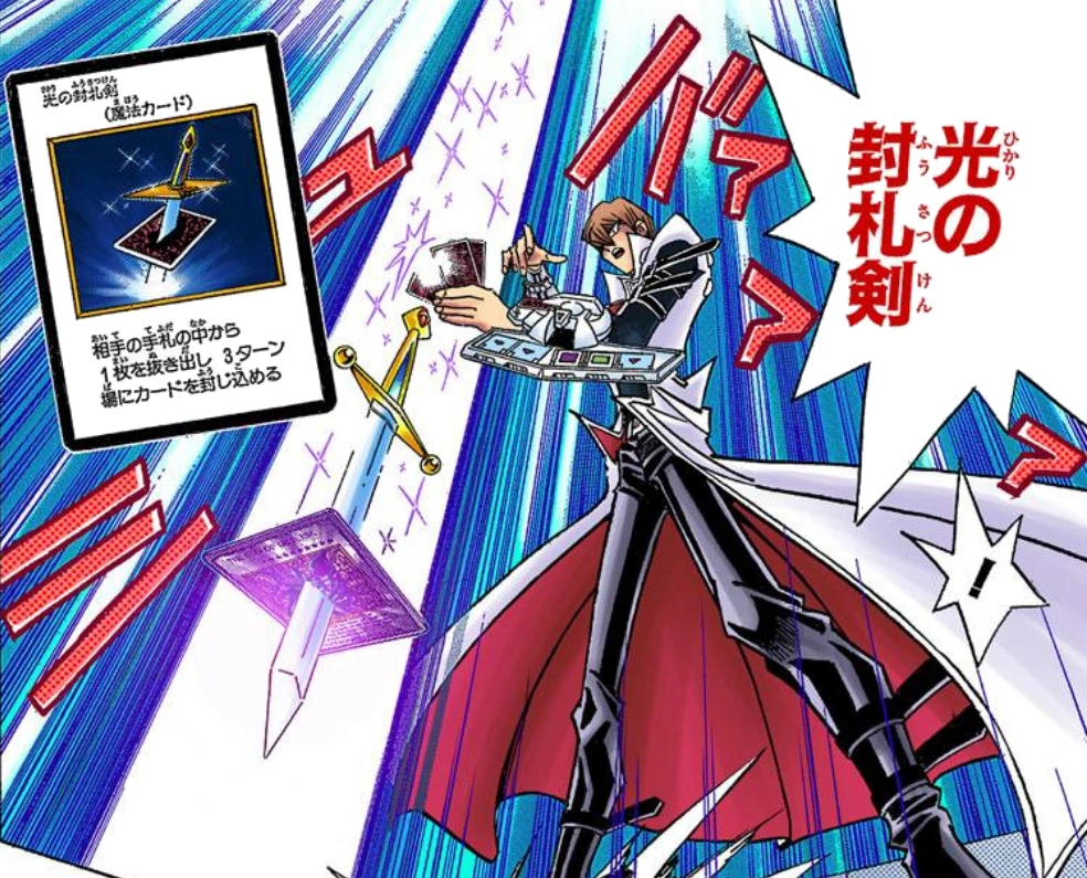 배틀시티가 본격적으로 시작하기 전 어둠의 유우기와 안즈는 데이트(?)를 하는데, 이 때 유우기가 카드샵에 들려서 뽑은 게 바로 이 카드다. 그 때 어둠의 유우기의 대사도 "오, 좋은 카드다." 몇 번이나 중요한 듀얼에서 잘 써먹은 빛의 봉쇄검이 사실은 평범하게 카드샵에서 산 카드라는 게 어떤 의미로는 대단하다.