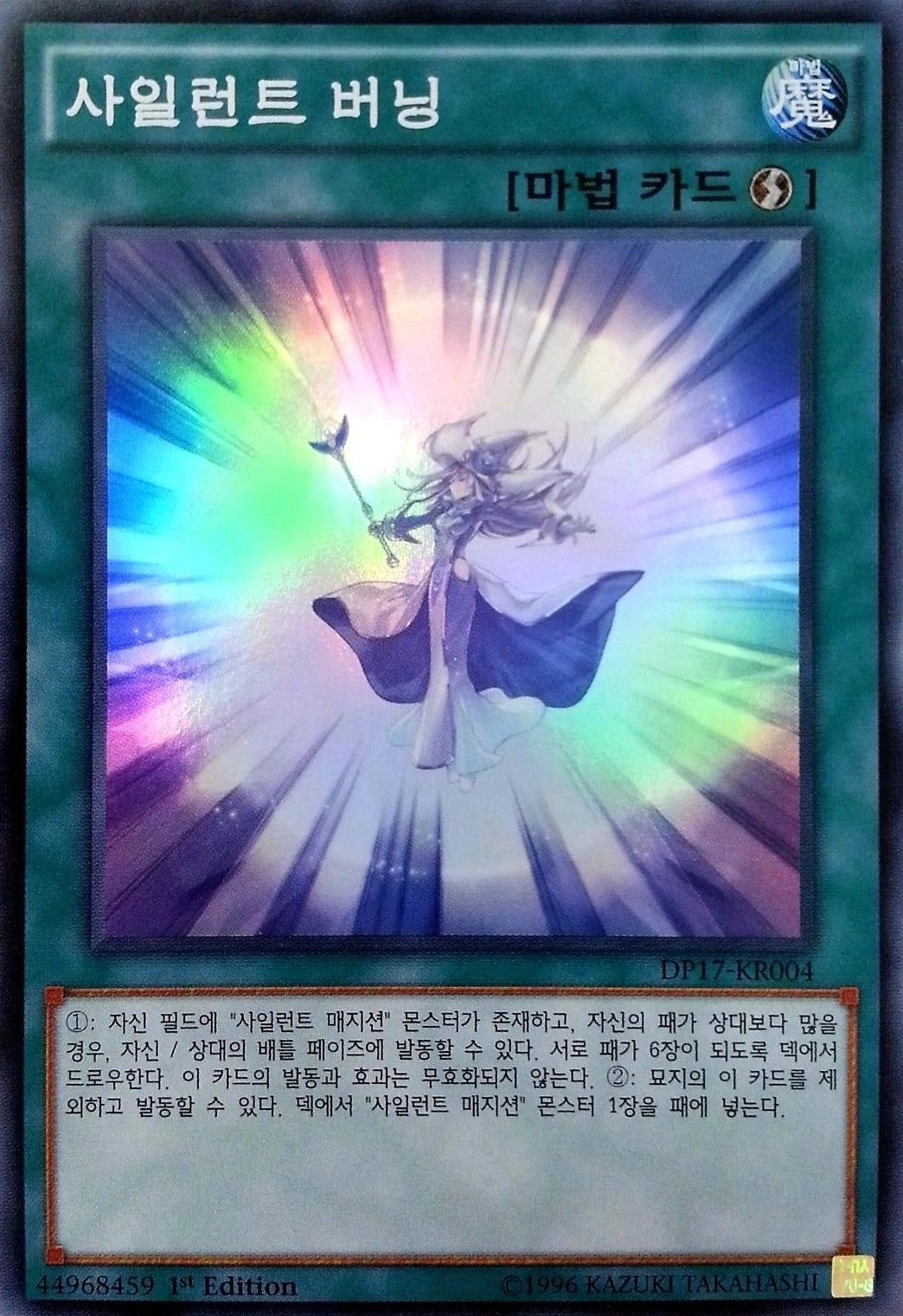 ① : 자신 필드에 "사일런트 매지션" 몬스터가 존재하고, 자신의 패가 상대보다 많을 경우, 자신 / 상대 배틀 페이즈에 발동할 수 있다. 서로 패가 6장이 되도록 덱에서 드로우한다. 이 카드의 발동과 효과는 무효화되지 않는다.