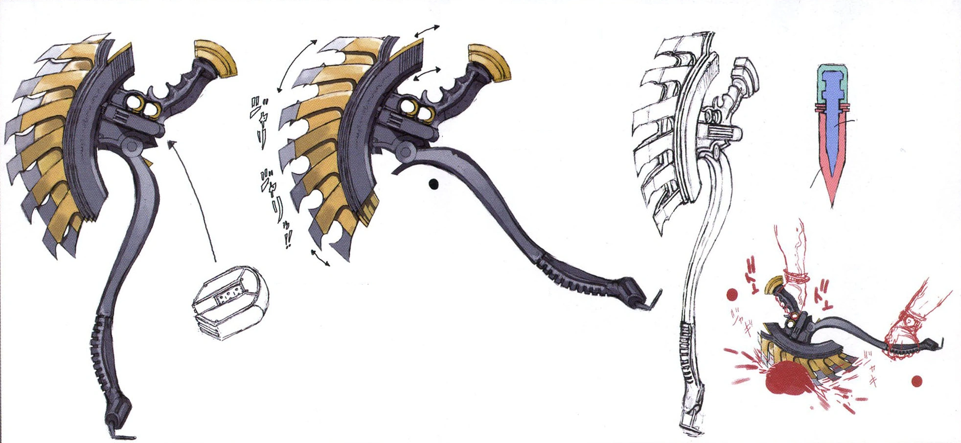 | 아마 진명은 이게 아니다. 절대 아니다. 그렇지만 이 이름으로 발동한다. 골든 불합리. 뇌신의 힘이 깃든 거대한 외날도끼. 킨토키의 괴력 없이는 다룰 수 없는 무게를 가진다. 번개를 담은 카트리지를 폭발시켜 파괴력을 높인다. 카트리지의 사용량에 따라 위력이 변화한다. 최대 15회. 가끔 재밍된다. 자세한 내용은 그림 참조... 아마 원래는 이런 형태가 아니다. 절대 아니다. 골든 불합리. ("Fate GO"에서는 사용되긴 하지만 진명개방은 하지 않는다) ▶ Fate/Grand Order Material 2권 |