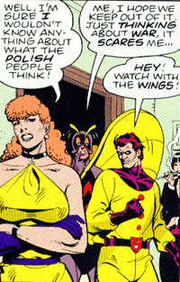 본명은 샐리 주피터. 미닛 맨 당시에 활약하던 여성 히어로이며 노란 색의 짧은 원피스와 검은 망사스타킹 코스츔을 하고 다녔다. 다른 히어로들과는 달리 에이전트까지 두면서 모델 활동을 하는 등 자신의 정체를 숨기지 않았으며 본격적으로 섹스어필을 강조한 캐릭터. 덕분에 그녀가 활약하던 당시의 만화 중엔 그녀를 모델로 한 성인물이 많았으며 어떤 인물들은 일부러 샐리에게 잡히기 위해 범죄를 저지르기도 했다.(…) 마조히즘...?