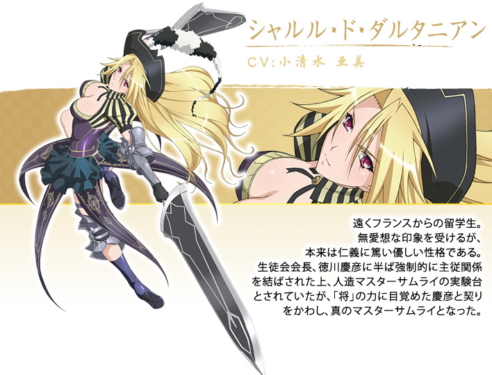 프랑스 출신. 고등부에 소속되어 있는 유학생. 17세기 군인 샤를 드 달타냥의 이름을 이어 받았으며, 애칭은 애니메이션과 마찬가지로 '니아'. 외교관의 딸로서 일본에 있을 때 중등부에 편입. 그 때 요시히코의 책략에 넘어가 '쇼'와 '사무라이'로서의 관계를 맺어 버렸다. 이 탓에 가족들과 함께 귀국했으나 다시 일본으로 돌아와서 그의 밑에서 일하고 있다. 요시히코를 원망하고 있지만, 계약 때문에 거역도 못하고 있으며 요시히코가 자신의 쇼(將)의 능력으로 '마음을 묶어 두고 있는지라' 반 세뇌 상태에서 강제의 그의 명령을 수행하기도 한다.