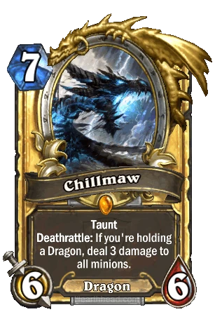 | 효과 | 도발. 죽음의 메아리: 내 손에 용족 하수인이 있으면, 모든 하수인에게 피해를 3 줍니다. | ||||||||||