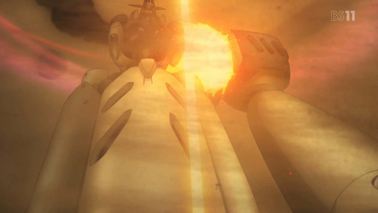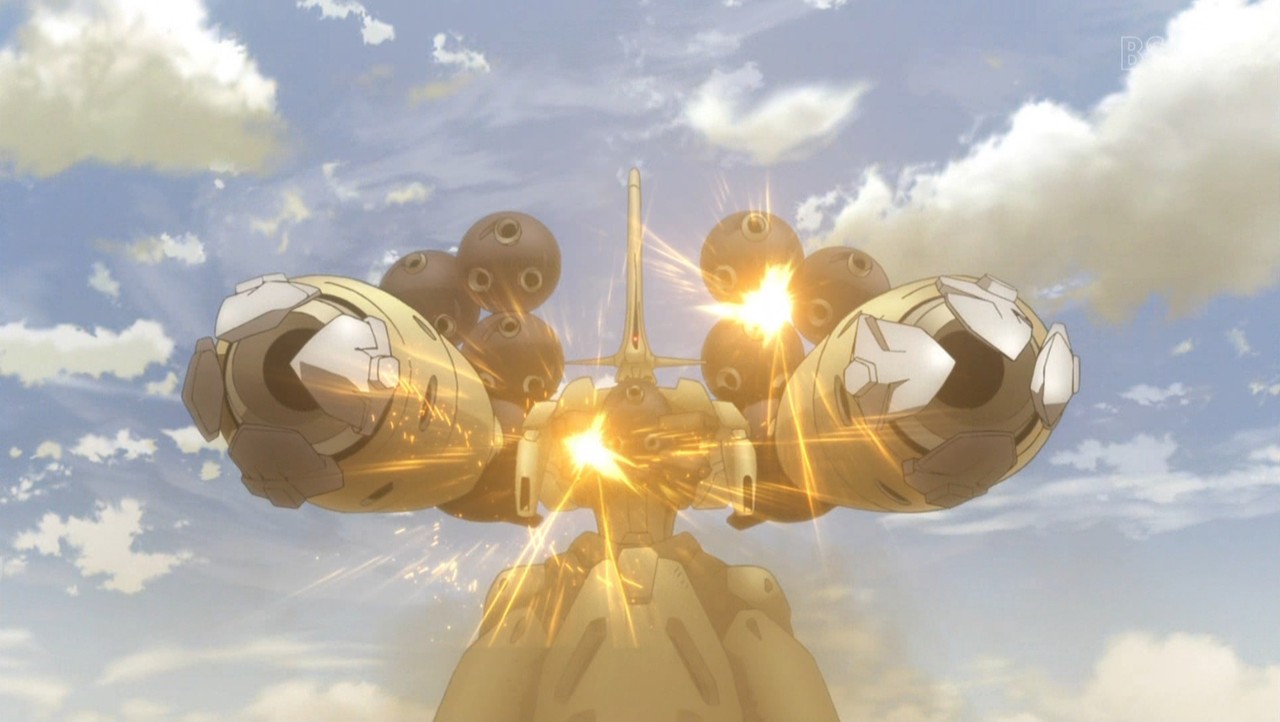 마리토 코이치로의 소대를 몰아붙였지만 듀칼리온이 새틀라이트 벨트에서 저격으로 양 팔을 날려버리면서 능력을 사용할 수 없게 되면서 패배. 약점이 은근 허당스러운 것이, 수평 방향으로 오는 공격에 대해서는 철벽의 방어를 자랑하지만 수직 방향으로는 안 된다(...). 수직 방향에 대해서는 중력이 적분되기 때문이다. 그래서 위로부터 온 공격에 속수무책이었던 것. 이후 지구군에게 회수되었다. 알드노아 드라이브는 백작에 의해 정지되었지만. 혹시 지구군에 의해 재활용되는 거 아니냐는 예측이 있었으나 그런 거 없었다.