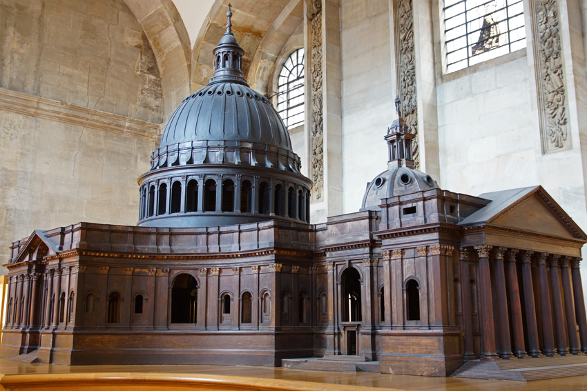 르네상스의 영향이 이어져 고딕 양식을 불완전한 것으로 보았던 17세기 유럽의 풍조에 공감한 렌은 자신의 계획을 왕립 위원회에 납득시키기 위해 당시 돈으로 500파운드나 들여 길이 6m, 높이 4m에 달하는 목조 모형을 1673년 만들었다. 렌의 설계를 충실하게 반영한 '그레이트 모델'은 오늘날 세인트 폴 대성당의 다락방에 보관되어 있다. 하지만 이런 노력에도 불구하고 렌의 첫 번째 설계안은 국교가 성공회였던 영국의 시각에서 봤을 때 그리스 십자가를 연상시키는 평면과 거대한 돔이 성 베드로 대성당으로 대표되는 가톨릭의 색채를 물씬 풍긴다고 해서 퇴짜를 맞았다.