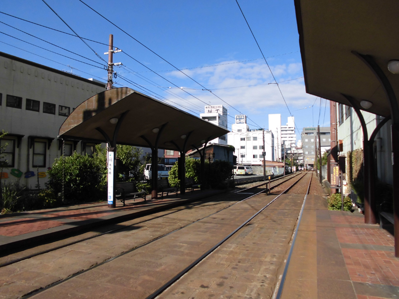일본 구마모토현 구마모토시 츄오구에 위치한 구마모토 시 교통국 구마모토 시영 전차 카미쿠마모토선의 정류장이다. 부역명은 '구마모토 중앙우편국앞(熊本中央郵便局前)'이다. 상대식 승강장으로 횡단보도로 연결된다. 운행계통 B계통이 지난다. 여기에서 신마치 정류장까지는 전용궤도 구간이다. 다른 구간처럼 도로를 따라가는 것이 아니라 주택가 사이로 지나가기 때문.