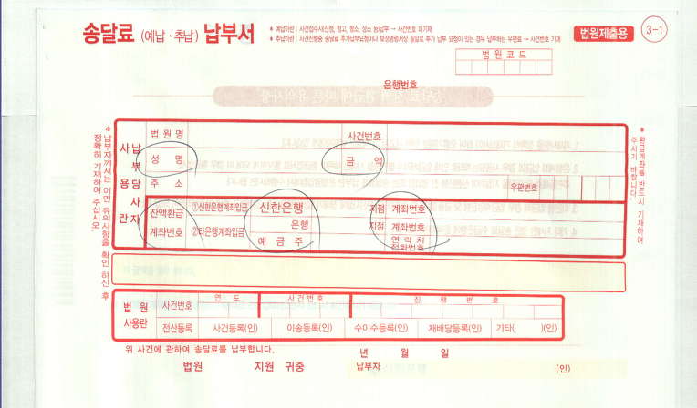 - ↑ 대부분의 법원에선 신한은행이 출장소를 운영하지만 모든 법원이 꼭 그런 아니다. 예를 들어 성남지원이 우리은행을 취급한다든지...