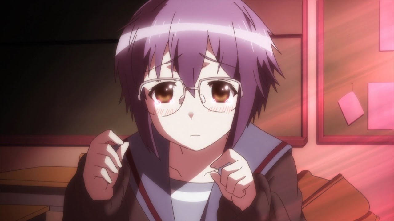 소실의 마지막에서 쿈이 입부신청서를 돌려줄 때의 나가토의 안쓰럽게 울먹거리는 표정과 떨리는 손으로 입부서를 제대로 한번 놓치면서 잡지 못하는 손짓은 보는 이들이 저절로 안쓰럽게 하며 애간장을 녹게 만든다. 쿈 그런 거 돌려주지 말란 말이야!! 실제로 이 장면이 나온 순간 극장에서 절로 탄식 소리가 나왔다는 도시전설도 있다.(...)