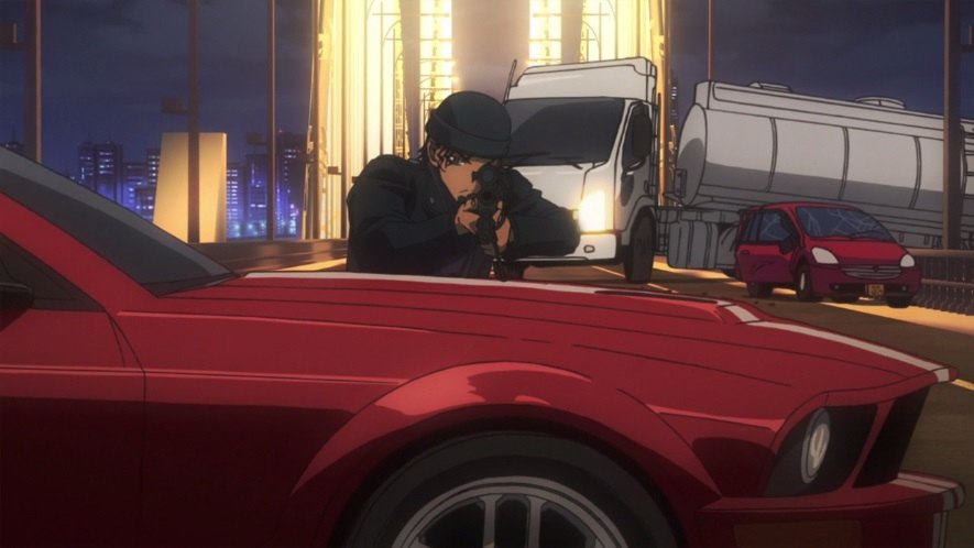 - 이번 극장판에서 아카이 슈이치의 새로운 애마인 포드 머스탱이 등장한다. 기종은 5세대 머스탱을 기반으로 한 고성능 모델인 GT500[19] 사양은 붉은색상에 트윈 레이싱 스트라이프 데칼이 부착된 2007년형 머스탱이다.[20]