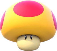 작은 마리오 상태에서 특정 물음표 블럭을 치면 버섯이 출현한다. 이 상태에서 데미지를 받으면 그대로 작은 마리오가 된다.