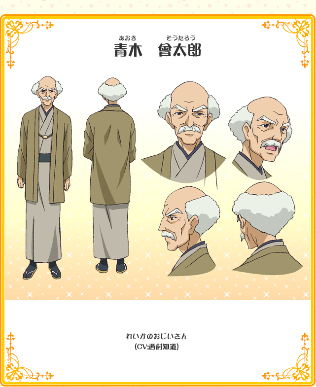 - 레이카의 할아버지. 16화에서 첫 등장. 레이카가 자신이 하고 싶은 것이 모르겠다고 고민하자 "전부 다 그만두면 무언가 해답이 보일 것"이라고 조언해주었다. 서도가로, 종종 '道'라는 한자를 쓰곤하는데, 레이카의 "道 정신"이 강한것도 이 분의 영향이 큰 듯하다.