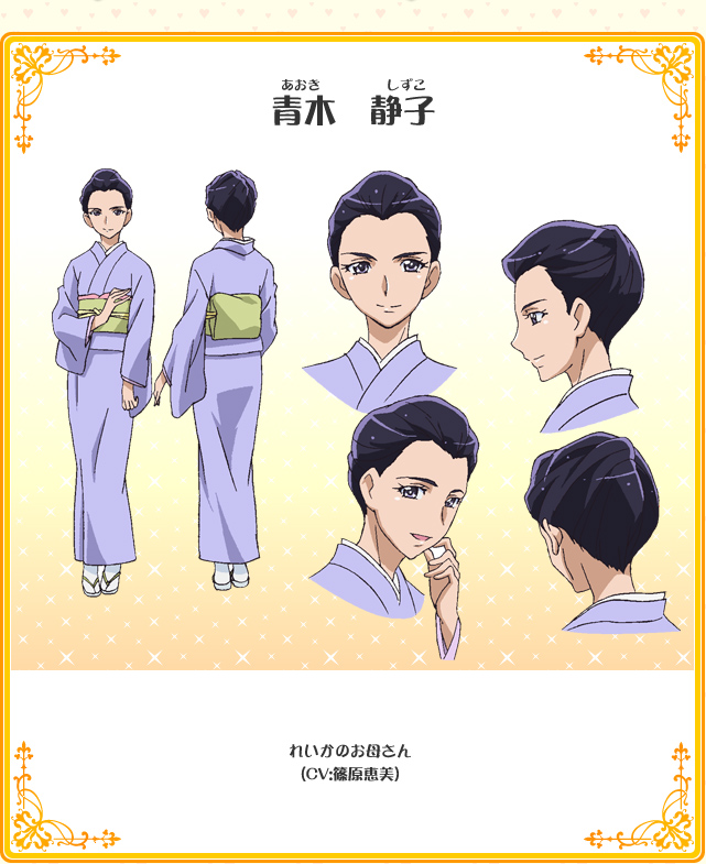 - 레이카의 엄마. 15화에서 어머니의 날 기념으로 레이카가 직접 만든 찻잔을 선물받으면서 선행 등장했고, 16화에서 말하면서 제대로 등장했다. 일본의 전형적인 정숙하고 위엄있는 부인이라는 느낌이지만, 실은 합기도의 달인인듯.