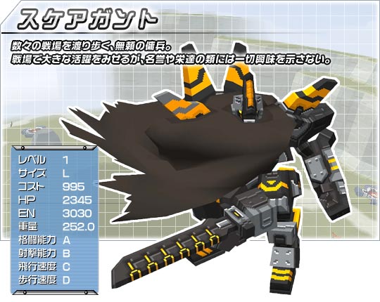 코즈믹 브레이크에 등장하는 L사이즈 육전형 로봇. "망토가 아주 간지난다!' 하여 "스간지"라는 애칭으로 불리운다.[1] 구 명칭은 그에 어울리는 스케어간트였다. 스텟은 그저 평범한 L육전형이지만 오른쪽 고정 AM파츠가 망토[2]인 특이한 로봇.