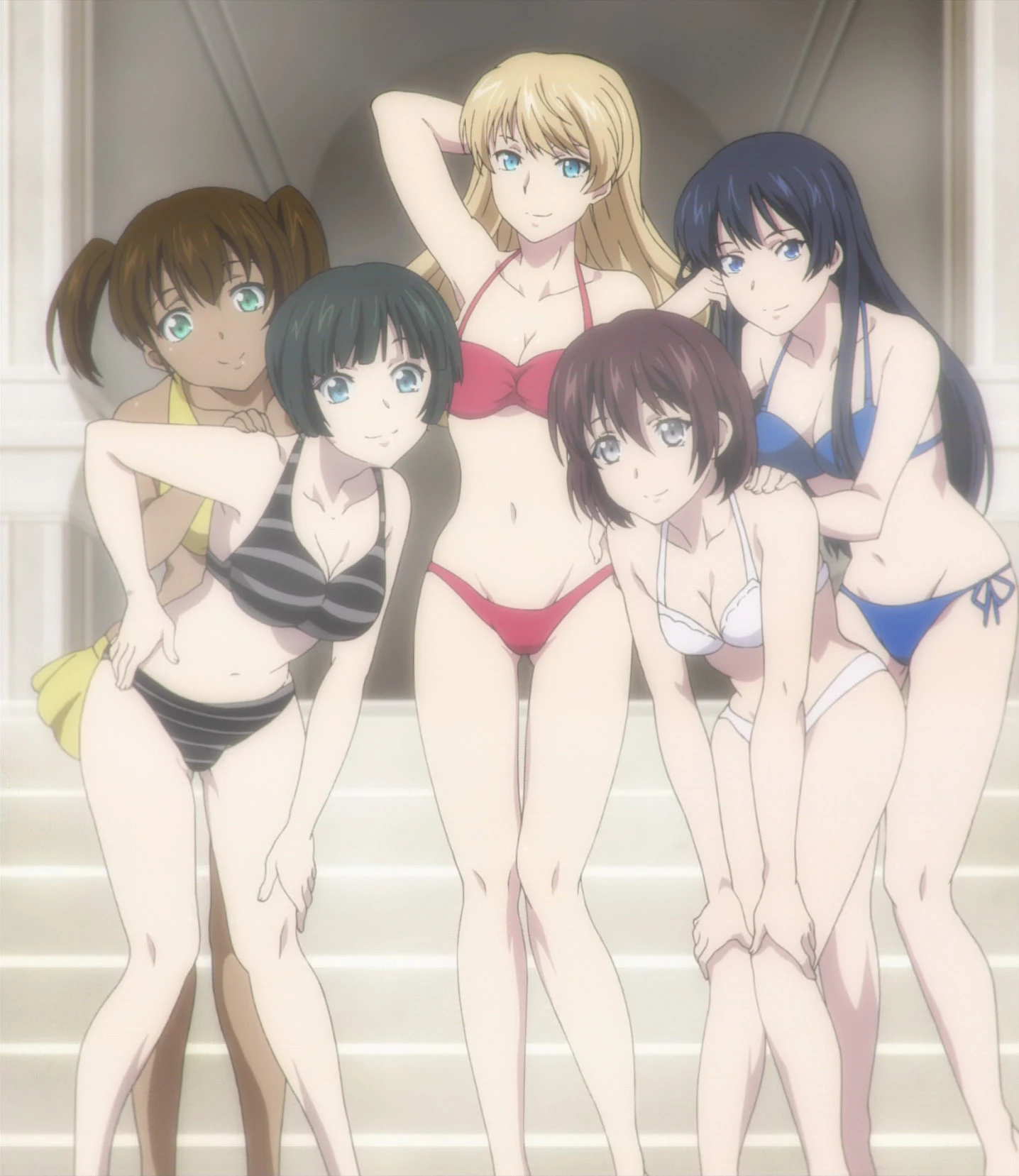 - CV - 아라나미 카즈사 차분한 인상의 흑발미인. 5명 중 가장 연상으로 보이며 파란색 비키니를 입고 등장.