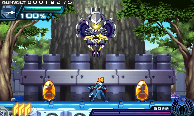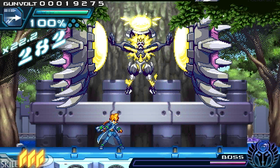 유닛이 전방으로 돌진하는 패턴. 2페이즈부터는 무수한 시충을 동원하는데, 시충이 먼저 날아오고 그 다음에 유닛은 시충이 날아오는 반대 방향으로 돌진한다. 걍 점프 한 번만 해주면 된다(...). 회피도 엄청 쉬운데, 여기에 점프하기 전 피뢰침을 박아주면 자잘하게 대미지를 주는 것도 가능할 정도로 매우 허술하기 짝이 없다. 2페이즈부터는 시충이 날아오니 배리어로 버티다가 유닛이 돌진하면 재빨리 점프하자. 시충이 날아오는 방향 때문에 되려 유닛의 공격 방향을 더 쉽게 파악할 수 있어서 체감 난이도가 더 하락한다(...). 단, 역린 펜던트 착용 시 EP 에너지 잔량에 주의.