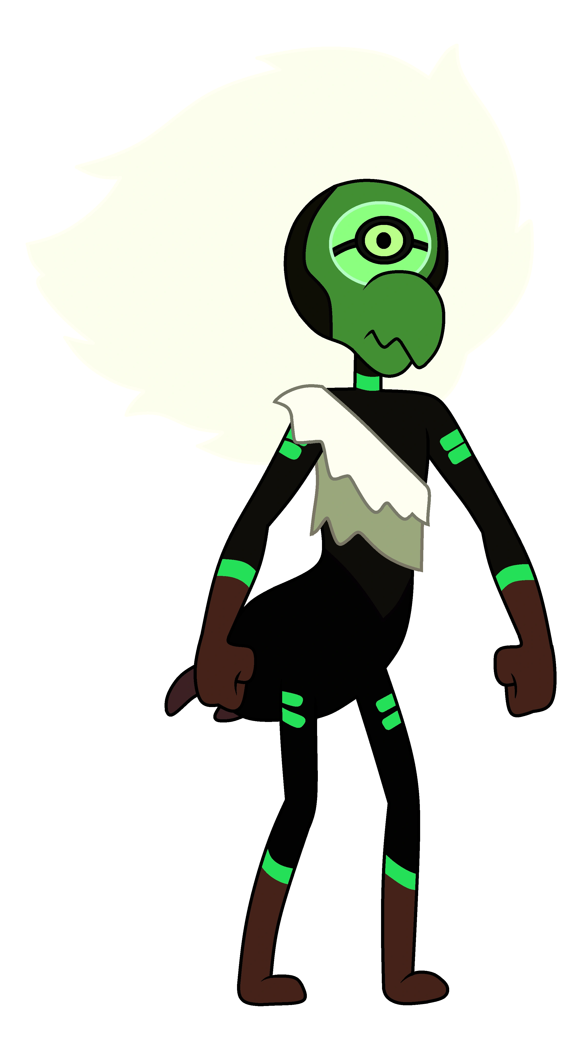 - ↑ 젬의 생김새가 에메랄드의 일종인 트라피체 에메랄드(검은 거북등 무늬의 에메랄드)를 닮았기 때문에 일부 팬들은 트라피체 에메랄드 혹은 에메랄드가 그녀의 본명일 것이라 추측하고 있다. 다만 공식적으로 밝혀진 정보는 아무것도 없기 때문에 확신은 불가능하다.