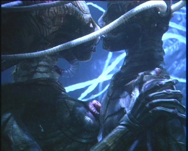 - ↑ 일반 상영판에서는 패트릭의 등에 수많은 촉수들이 돋아나는 것으로 끝나지만 감독판에서는 외계 생명체 형태로 검열삭제를 이어가는 모습까지 나온다. 이 때 나오는 외계 생명체 형태는 그의 첫 번째 형태다.