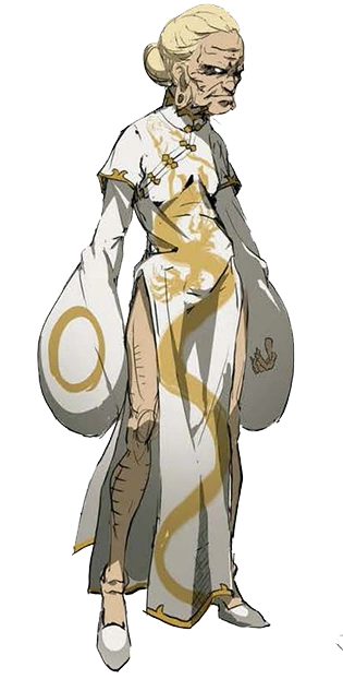 - 세계급 아이템 경성경국의 사용자로 나이 많은 노파. 칠흑성전 대장도 꼬박꼬박 존칭을 써서 부르는 걸 보면 슬레인 법국에서도 꽤 높은 지위에 있는 걸로 보인다. 그런데 아이템 경성경국의 외양은 차이나 드레스. OME. 경성경국을 사용해 샤르티아를 지배하려하다 청정투척창에 관통 당해 중태. 샤르티아가 정신지배 와중 절박함에 몰려 되는 대로 쑤셔박은 스킬 중에 저주 계열[11]도 있었는지, 부상 직후 곧바로 치료 마법을 썼으나 전혀 통하지 않았다고 한다.[12] 결국 10권에서 사망이 확인되었다. 아직 공개되지 않은 후임이 있어서 경성경국을 물려받을 듯하다. 아이템의 위상을 생각하면 은퇴한 무녀공주 중 하나가 아니었을까 생각된다.