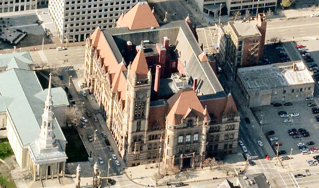 상공에서 찍은 신시내티 다운타운--- NFL 신시내티 벵갈스과 MLB 신시내티 레즈 경기장이 강변에 위치해있다.