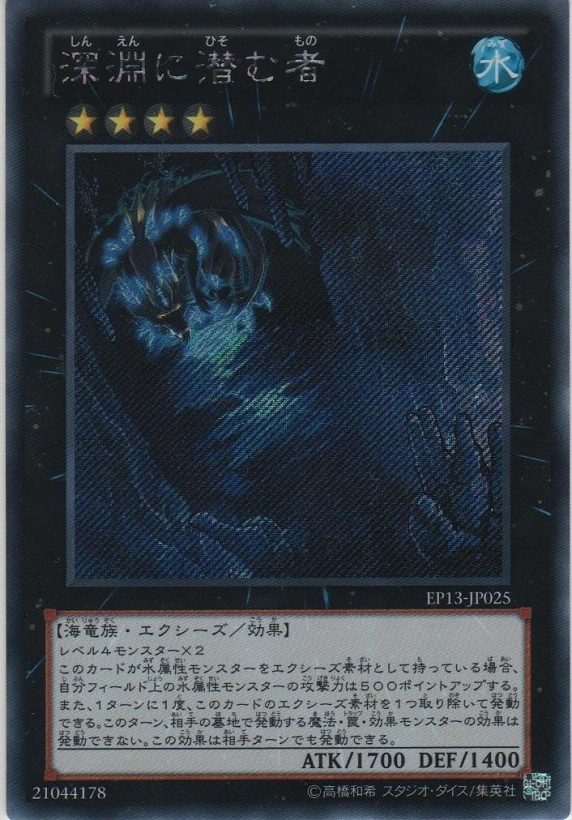 심연에 숨은 자의 정체는 바로 이 몬스터의 엑시즈판 리메이크였다. 기본 능력치가 동일하고 일러스트를 잘 보면 생김새가 거의 같은 것을 알 수 있다. 이 카드 역시 심연에 숨은 자처럼 TCG 선행발매 카드였다.