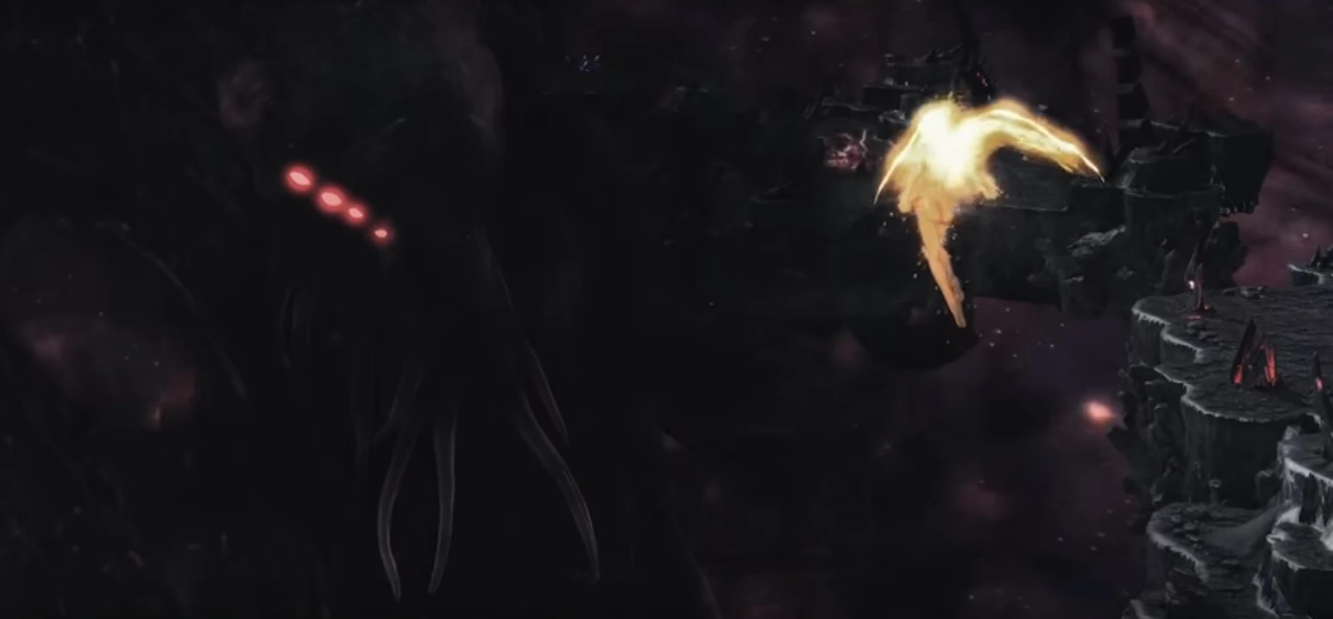 보아라, 너희 신의 형상을. 별들의 탄생과 함께 시작되었던 순환의 정점을.Behold, the form of your god. The culmination of a cycle set into motion when the stars were born.