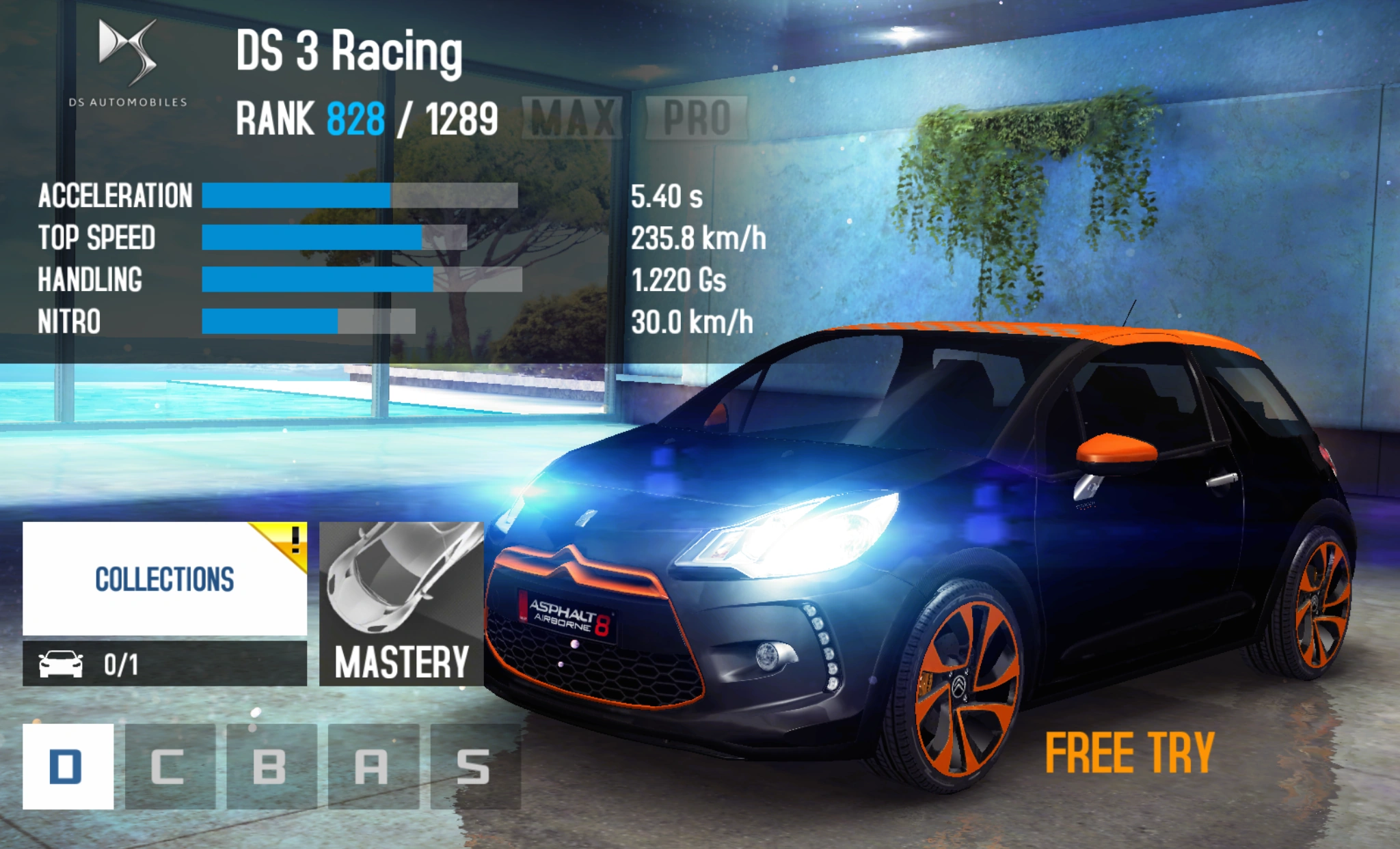 가속력은 아우디 R8보다 느리지만, 기본 속도는 약간 더 빠르다. 그렇지만 대부분의 사람들은 그냥 아우디 산다 업그레이드를 충실해 해 주면 시즌 1 중반까지는 그럭저럭 해결해 볼 수 있다. 솔직히 실력 좋으면 업그레이드 하나도 안하고 시즌 1 D클래스 이벤트는 전부 별 다섯개 딸수 있다.