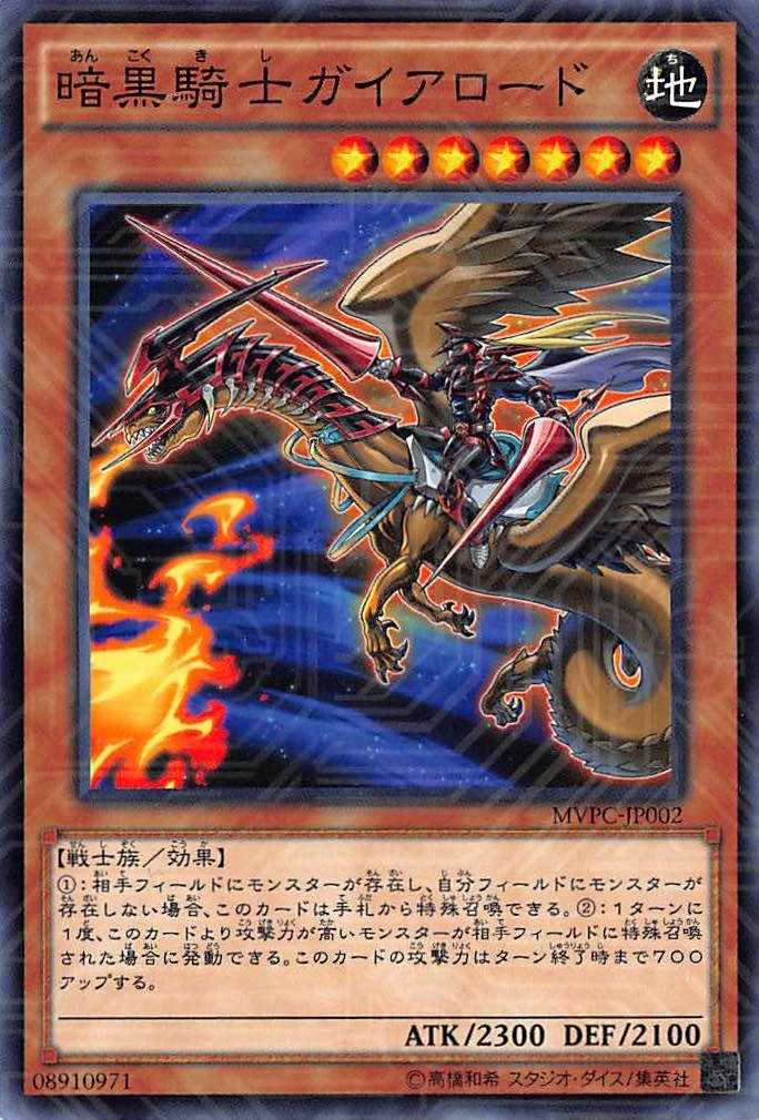 각성의 암흑 기사 가이아 역시 상대 필드의 몬스터가 자신보다 많다면 릴리스 없이 일반 소환이 가능하나 이 카드가 특수 소환되어 있는 상황에서 그 효과를 발휘하긴 쉽제 않기에 쓴다면 역시 바로 일소가 가능한 질주의 암흑기사 가이아쪽이랑 더 궁합이 맞는다.