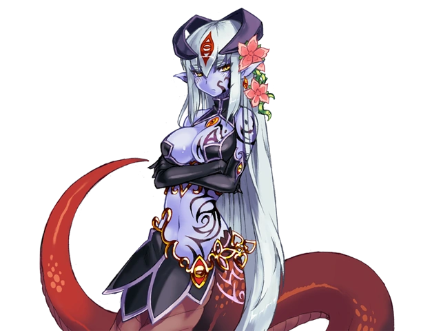 루카의 마을 근처에 쓰러져 있던 라미아로, 본인의 말에 의하면 누군가가 일으킨 폭발에 휘말려 멀리서 일리아스 마을 근처까지 날려져 왔다고 한다. 용사를 지망하면서도 쓰러져 있던 마물인 자신을 공격하지 않고 오히려 돌봐준 루카한테 흥미를 가진다. 루카가 용사가 되려는 목적(마물과 사람이 공존하는 세계)을 듣고 어린아이 같은 생각이라고 까면서도 한편으론 온 세상을 바꾸려 하는 루카에게 흥미가 일어 동행하게 된다. 직접적으로 루카의 싸움에 끼어들어 힘을 빌려주지는 않지만, 대신 루카에게 마족의 검술을 가르쳐주거나 마물에 대한 지식을 알려주는 식으로 도움을 준다.[1] 머리 위의 꽃은 장식이아니라 신체의 일부라고 한다.