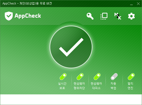단, Pro가 아닌 일반 앱체크에는 랜섬웨어 결제 안내 파일 삭제 기능과 사전 차단 기능만 있으므로 랜섬웨어 제거는 안티 바이러스로 삭제하거나 앱체크 메인화면에 있는 MZK[8]버튼을 클릭해 사용하자.