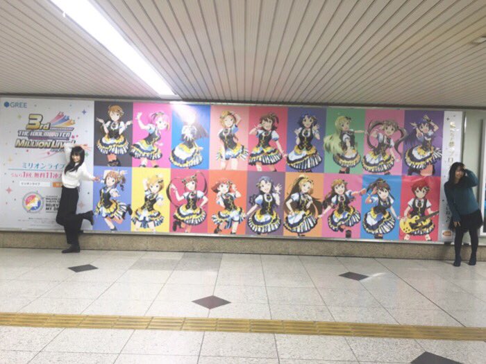 2016년 밀리언 라이브 3주년 라이브 오사카 공연을 앞두고, 오사카 역에 걸린 3주년 라이브 광고 전광판 앞에서 담당 아이돌인 모모세 리오의 포즈를 따라하며 찍은 사진. 좌측에 같이 찍힌 인물은 요코야마 나오역 와타나베 유이.