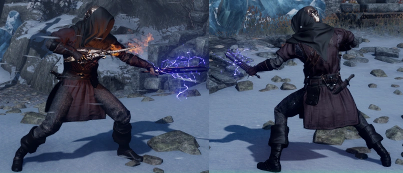 - 두 개의 송곳니(Twin Fangs): 두개의 단검을 내려꽃는 스킬로 적의 후방에서 공격했을 경우 1000%의 데미지를 입힐 수 있다. 위에 언급한 Flank Attack와 연계하여 사용하면 자동은신에 후방공격 보너스까지 붙으므로 어마어마한 대미지를 낼 수 있다.