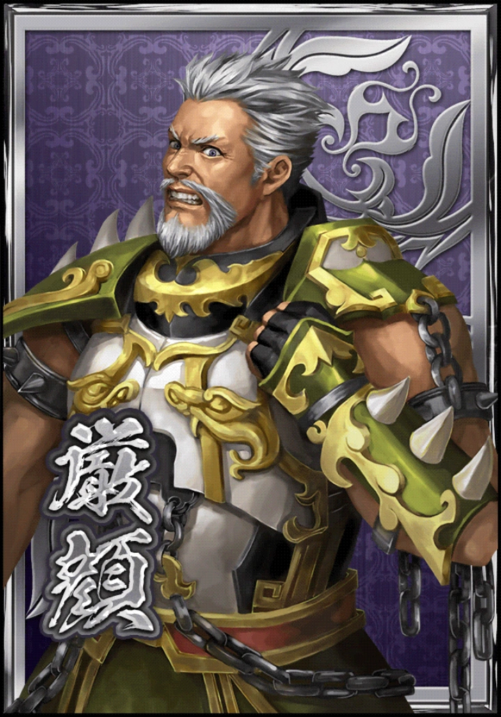삼국지 영걸전에선 무력 86/지력 71/통솔 87로 준수한 능력치를 가진 보병계 장수이나 허창 전투에서 황충과 함께 이벤트로 사망하므로 키우기가 좀 그렇다. 그의 존재 의의로는 하후덕과의 일기토에서 아랏챵차!라는 불후의 명대사(...)를 남긴 것.