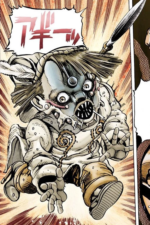 원반 두개와 단검을 들고 있는 스탠드체의 외형은 'bronzetti'라는 이름의 인형을 본 뜬 것이다.#. 작중에는 이 스탠드체를 아메리카 원주민 외형의 목각 인형에게 빙의시킨다.