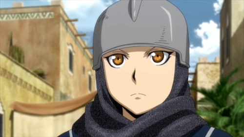 원작과는 달리 무술실력이 수준급. 무려 11살에 참전하였고 포로가 되어서도 담력시험하러 온 소년들이 온 것을 틈타 부츠 속에 숨겨둔 칼로 소년들을 제압하고 감옥을 빠져나왔다. 이후 아르슬란을 인질로 해서 실랑이를 벌이다가 말을 훔쳐타고 파르스를 탈출한다. 이때 애니메이션판으로는 나이도 나이라 그냥 소년목소리로 들리고 이후에도 소년같은 행동를 많이 해서 남자로 착각한 시청자들이 매우 많다. 20화에 머리를 풀때 설마설마하다가 정말로 여자란 걸 알고 충공깽(...)한 사람들이 꽤 많은 편이다.