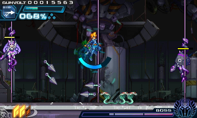 플레이어가 있는 위치로 수리검을 던지는 패턴. 수리검이 바닥에 닿으면 독사로 변한다. 가끔 2명의 엘리제가 같은 높이에서 수리검을 던져, 수리검끼리 충돌해 튕겨나가는 경우가 있다. 파괴 가능한 오브젝트이기에 뇌격린 배리어로 방어하면 된다. 적당한 위치로 유도하다가 이동할 수도 있지만, 양쪽에서 수리검이 날아오며 바닥에 닿으면 독사로 변해 되려 회피가 더 어려워지기 때문에 그닥 추천할 게 못 된다. 2명의 엘리제가 폴을 상하이동하면서 수리검을 날리는데, 이때 잠시나마 짧은 텀이 있으니 EP 에너지가 부족하면 재빨리 충전하자. 엘리제2는 가운데 폴 위에서 수리검을 날리는데, 다른 2명의 엘리제가 다른 패턴을 사용하는 와중에도 계속 수리검을 던지는데다 엘리제2가 던지는 수리검은 죄다 무적판정이 달려있어서 상당히 성가신 편.