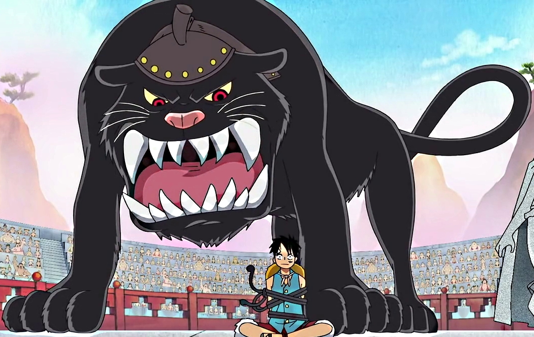- 여인섬의 사형인을 처형하는 난폭한 흑표범이다 결국에는 루피에게 간단히 당한다.
