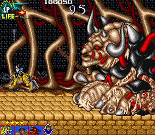 - 최종보스. 공격은 불덩어리 뿜기와 잡기. 배를 공격해서 터뜨린 뒤 호랑이나 거인을 타고 뿔을 부러트려야 한다. 아직 완전히 부활을 못했는지 몸은 아직도 곳곳이 썩어있고 마음대로 움직이지도 못한다.
