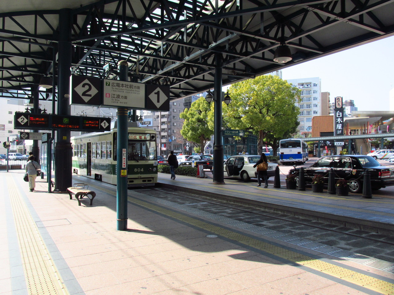 JR의 경우 히로시마의 중심가에 가까운 편이라 이용객이 많은 편이며, 2003년 히로시마 전철 7호선 운행 개시 이후 이용객이 더 늘었다.