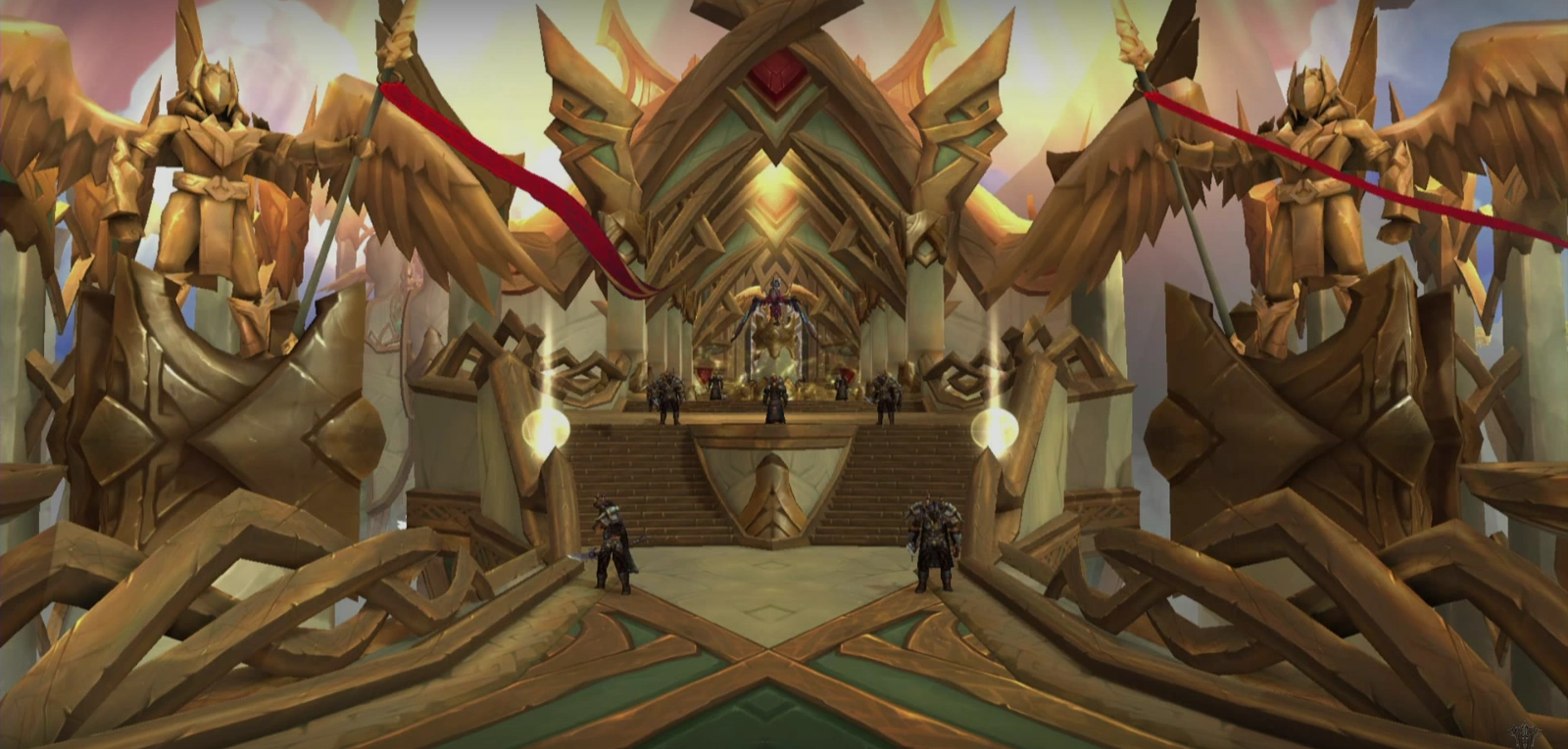 | 스톰하임 상공의 구름 속에서, 티탄 수호자 오딘은 아제로스에서 가장 위대한 브리쿨 전사들을 소환하여 그의 발라리아르로 삼았습니다. 이 승천한 브리쿨 전사들은 연회장과 사냥터를 누비며 자신을 단련하고, 다가올 엄청난 전쟁에 대비하고 있습니다. 이 브리쿨 전사들로 가득한 연회장을 통과한 모험가만이 오딘 앞에 설 자격을 얻게 되고 아그라마르의 아이기스를 거머쥘 기회를 얻게 될 것입니다.[1] |