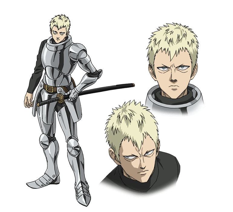 보로스가 지상을 처리하기 위해 내보낸 재생괴인 메르자르가르드와 처음 맞붙은 상대다. 실력은 충분히 뛰어났으나 적이 더 강한데다 상성 문제도 있어[6], 고전하면서 왼쪽 팔을 잃었다. 죽기 일보 직전에 스승인 아토믹 사무라이의 도움으로 아슬아슬하게 생존, 아토믹 사무라이에게 검은 저 괴인에게 듣지 않는다며 도망치라 한다. 그러나 스승으로부터 네 검의 길이 끝나게 놔둘 수는 없으니, 지혈하라는 격려를 듣는다.