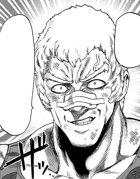 사이타마의 집에 놀러왔다가 싸울 때 리듬을 탈 필요가 없다는 얘기를 듣자, 대머리라 도발하며 싸움을 신청한다. 자살방법도 여러가지다. 다행히도(?) 후부키 그룹의 차에 치여 버린다. 때문에 싸울 때 음악을 들으면 ~ 위험하다는 교훈을 사이타마에게 몸소 알려준 꼴이 되었다(...). 이후 병원에서 재등장, 차에 치인 것을 몰라 사이타마를 초능력자나 마술사로 오인하나 동료들이 정정해줘 리벤지 매치를 생각한다. 그러나 후에 시내까지 날아와 인외의 경지에 이른 싸움을 벌이는 사이타마와 타츠마키를 보고 리벤지 매치를 미루기로 한다.