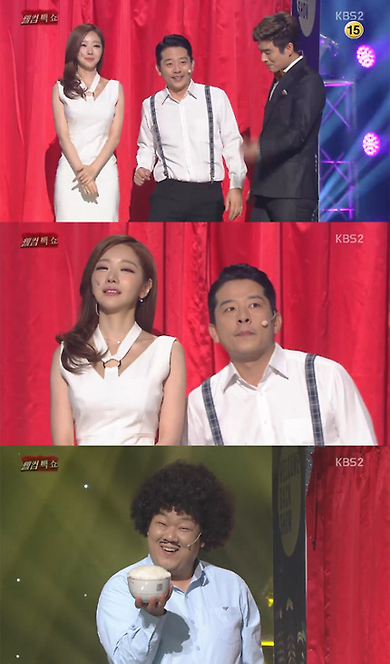 - 4화 방송분 부터는 밥 아저씨를 패러디한 밥 아저씨 역으로 바뀌었다. 밥 아저씨 분장을 하고 나오며, 음식을 맛있게 먹는 방법을 이야기한다. 첫번째 패턴은 주로 스케일이 매우 큰 음식을 만들어 통째로 먹는 형식이며, 2번째 패턴은 방청객에게 음식을 가져가서 약올리거나, 자기가 먹을 음식을 지키는 방법에 대해 이야기한다.