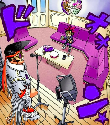 - 학교 축제에서 유우기네 반이 추첨으로 제일 좋은 자리를 배분받았는데도 그 사실을 무시하고 3학년 D반의 지정석이라며 자리를 강제로 점령했고, 유우기네 반의 학생들이 열심히 설치한 게임 카니발까지 철판으로 박살내서 어둠의 유우기를 빡치게 만든다. 그리고 '철판 아이스 하키'에서 지는 바람에 폭약이 든 시험관이 폭발해서 폭☆살당한다. 이것보다 전에 나온 에피소드에서 탈옥수를 화형시킨 것과 더불어 초반에 있었던 어둠의 유우기의 마왕 기질을 제대로 보여준 에피소드.