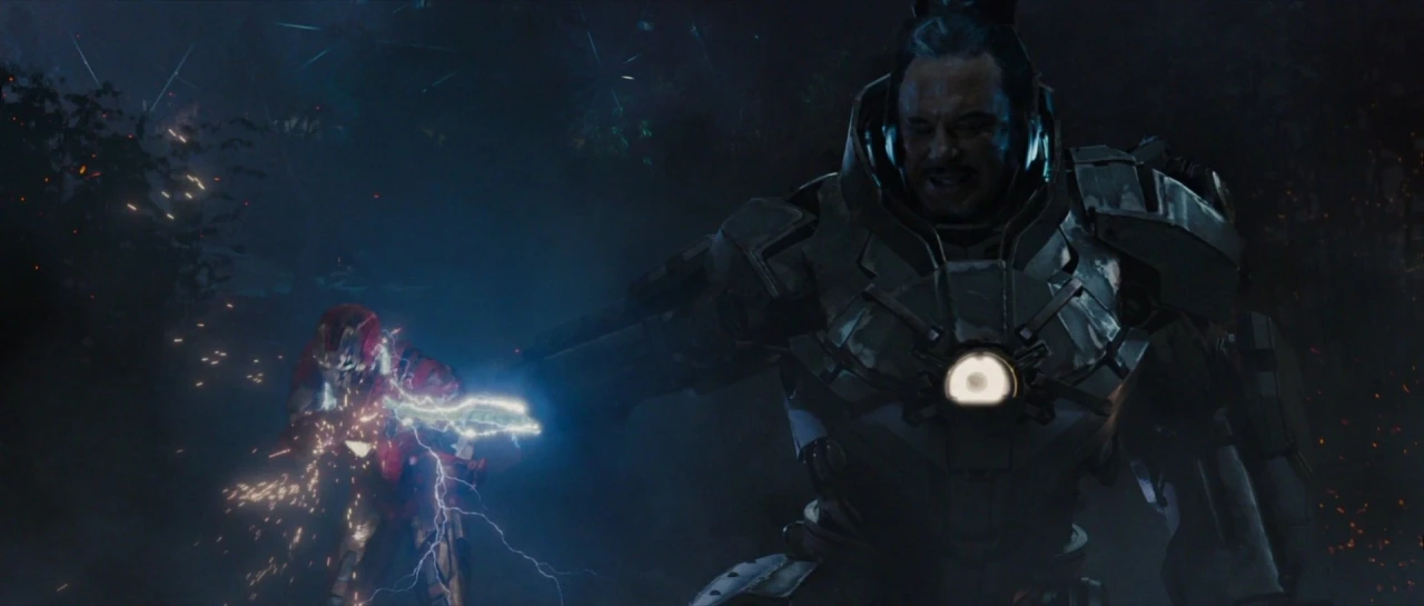 - ↑ 아무래도 두 아이언맨 수트에 허무하게 당하면 안 되니까 원거리는 약하지만 근거리는 강력하다고 설정을 잡고, 최종 결전에서는 주먹다짐만 함으로써(...) 강함을 어필한 듯하다. 또 당연하다면 당연하지만 히어로물에서 최종전은 대부분 육탄전이기 때문에...