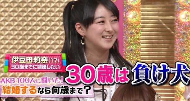 2013년 2월 1일 니혼 TV 예능 프로그램'가치가세'에 게스트로 출연했을 때 발언이 논란이 되었다. 사회자의 '몇 살에 결혼하고 싶은가'라는 질문에 30세에 결혼하고 싶다고 하면서 '세상 사람들이 30세라고 하면 패배자라고 말하잖아요. 패배자라는 말 듣기 전에 결혼하고 싶어요'(世間で30歳っていうと負け犬っていうじゃないですか。負け犬とか言われる前に結婚したい)라는 발언을 했다. 당연히 시청자들도 아무리 나이가 어려도 그렇지 저게 무슨 철딱서니없는 발언이냐, 결혼 여부로 승자 패자를 가르는 건 어디의 쓰레기같은 발상이냐며 까였다.