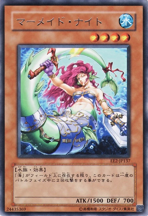 | "바다"가 필드 위에 존재하는 한, 이 카드는 1턴의 배틀 페이즈 중에 2회 공격할 수 있다. | ||||