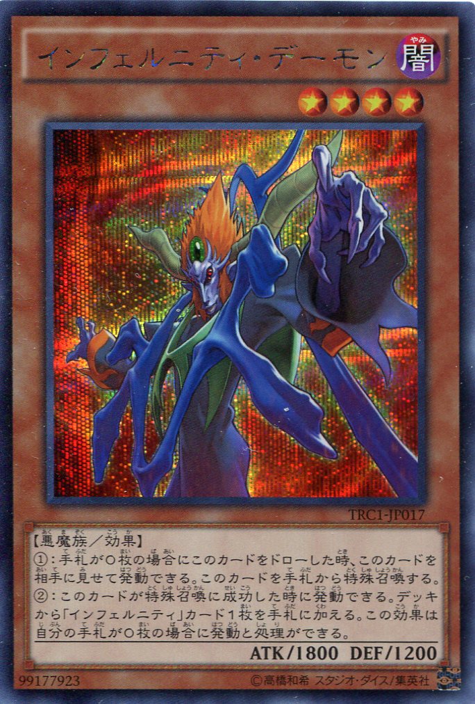 | ①: 패가 0장일 경우에 이 카드를 드로우했을 때, 이 카드를 상대에게 보여주고 발동할 수 있다. 이 카드를 패에서 특수 소환한다. ②: 이 카드가 특수 소환에 성공했을 때 발동할 수 있다. 덱에서 "인페르니티" 카드 1장을 패에 넣는다. 이 효과는 자신의 패가 0장일 경우에 발동과 처리를 할 수 있다. | ||||