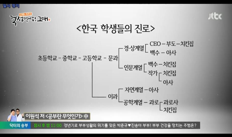 결국 인문학과 자연과학은 망했어요 - 게다가 박사과정까지는 시간은 오래 걸리는데 돈은 못 버는 안습한 처지이다. 집에 워낙 재산이 많아서 별 문제가 없으면 모를까, 일반적인 가정에서 저런 진로를 꿈꾸기는 어렵다.